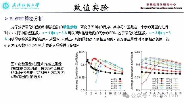 柯璐:本次汇报了一篇文献《Fast and anisotropic flexibility-rigidity index for protein flexibility and fluctuation analysis》,使用适当的数据集引入快速 FRI (fFRI) 算法,与原始 FRI 算法的 O(N2) 和 GNM 的 O(N3) 相比,所提出的 fFRI 的计算复杂度为 O(N),其中 N 是原子数。另外,引入各向异性 FRI (aFRI) 算法来进行生物分子的运动分析。与完全全局且黑塞矩阵中有 3N × 3N 元素的 ANM 不同,所提出的 aFRI 算法具有自适应 黑塞矩阵,其范围从完全全局到完全局部。尽管存在局部化,但三组特征向量中仍存在集体运动。此外,进一步分析 FRI 方法在蛋白质 B 因子预测方面的性能。为此,检查了与四个相关函数相关的 FRI 算法的准确性,并对 FRI 和 fFRI 与其他前沿方法(即 NMA 和 GNM)进行了比较研究。