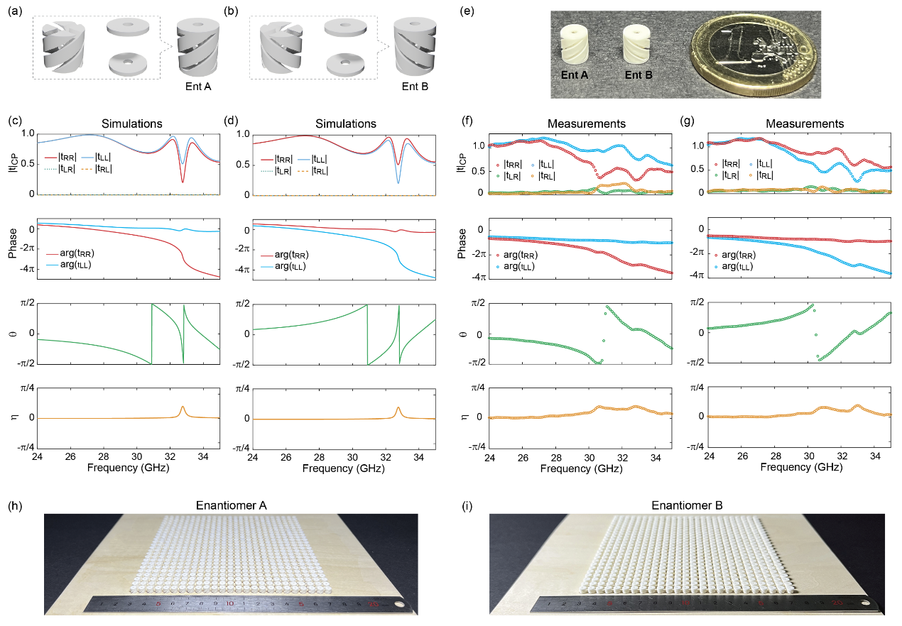 本工作利用3D打印工艺所提供的复杂陶瓷结构制备灵活性探索并实现了具备圆偏振本征谐振模态的三维介质超原子。实验中观测到的高透射率、宽带线偏振旋转效应(旋光性)是基于传统光刻技术制备的平面结构所无法实现的。本工作将先进三维制造技术(如微纳尺度3D打印)与陶瓷这一经典材料体系相结合,必将有力推动微波及太赫兹频段三维介电超器件的创新与发展。