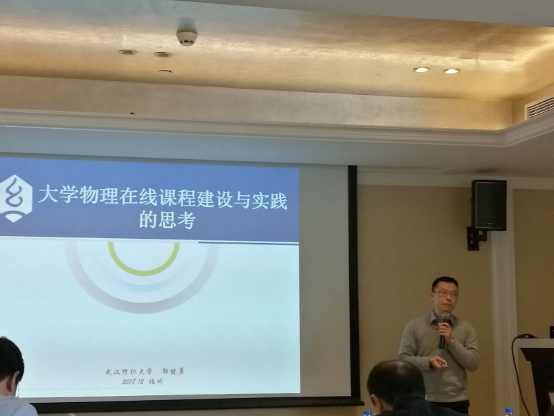 物理研究所的张杰院士、清华大学王青教授等专家精心准备的大会特邀报告和分会场报告。郭健勇老师作了题为《大学物理在线课程建设的思考》的报告,就自己在大学物理教学中开展线上教学的想法和经验与来自全国各地高校的一线大学物理教师做了交流发言。
