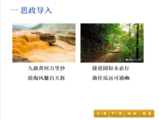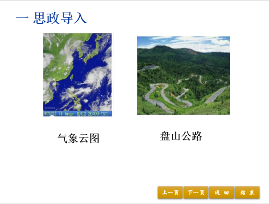 首先,引入思政元素,结合气象云图、千回百转的盘山公路和中国古诗词呈现的画面,引入方向导数的概念,让学生直观地感受到方向导数的特征。培养了学生的人文素养,并引导学生树立正确的世界观、人生观、价值观,面对人生路上的曲折,每个人都要有持之以恒的恒心、坚忍不拔的毅力、坚定不移的自信心。