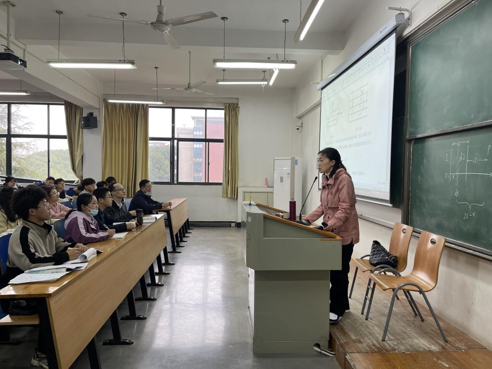 教育教学水平,加强课堂教学中的示范引领作用,特别是对年轻教师的教研能力示范引导,11月19日,大学物理教学中心在阳光校区03-218举办了优秀教师示范观摩课活动。本次活动由多次获得教学质量奖的谭艳蓉老师进行教学示范,教学中心主任、多名青年教师参加了观摩。