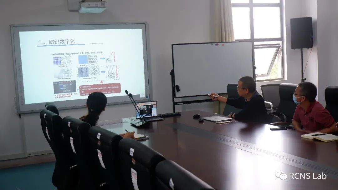 的邓中民教授介绍了纺织中的数学模型建立及应用等相关内容,然后由1名研一学生和1名研二学生汇报自己的研究进展,最后老师与同学们对汇报内容进行学术探讨,并对存在的问题给出相应的指导和建议。