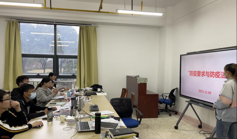 近期以来,国内疫情发展态势复杂严峻,为让同学们进一步了解疫情防控相关知识并积极配合学校防疫工作,2021年11月5日下午,数理科学韦德bet 2021级研究生在崇真楼(南楼)2032办公室开展了“防疫要求与防疫法”的主题班会。集中学习疫情防控知识和实验室安全等问题。