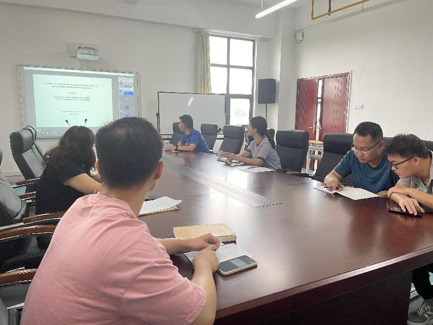 报告中,王益教授首先介绍通常情况下一维(或高维)可压缩Navier-Stokes方程解的渐近行为(时间渐近稳定性和粘性消失极限)被对应的可压缩Euler方程的平面Riemann问题所决定。接着王益教授分别介绍了一维可压缩Navier-Stokes方程粘性激波和稀疏波的稳定性研究进展。同时报告了近期的一个研究成果:利用零质量条件证明了一维可压缩正压Navier-Stokes方程粘性激波和稀疏波的组合波的时间渐近稳定性。报告结束后,与会的老师和研究生就自己所感兴趣的问题与王益教授进行了热烈的讨论,参会师生受益匪浅。