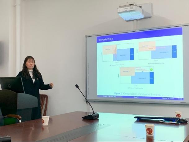 陈蕊娟博士做了题为“DeceFL: A Principled Decentralized Federated Learning Framework”的报告。报告提出了一种去中心化联邦学习算法(DeceFL),它不需要中央服务器,只依赖于客户端与其邻居客户端之间的本地信息传输,是一种完全去中心化的学习框架。进一步证明了,当损失函数光滑且强凸时,每个客户端在零性能差的情况下达到全局最小值,并达到与集中式联邦学习相同的收敛速度O(1/T),其中T是梯度下降中的迭代次数。最后,展示了算法在实际生活中的应用,验证了其对凸和非凸损失函数的有效性,说明了其适用于广泛的实际医疗和工业应用。