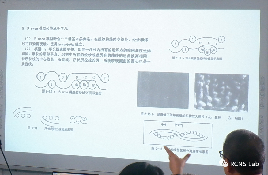 的邓中民教授介绍了纺织中的数学模型建立及应用等相关内容,然后由1名研一学生和1名研二学生汇报自己的研究进展,最后老师与同学们对汇报内容进行学术探讨,并对存在的问题给出相应的指导和建议。