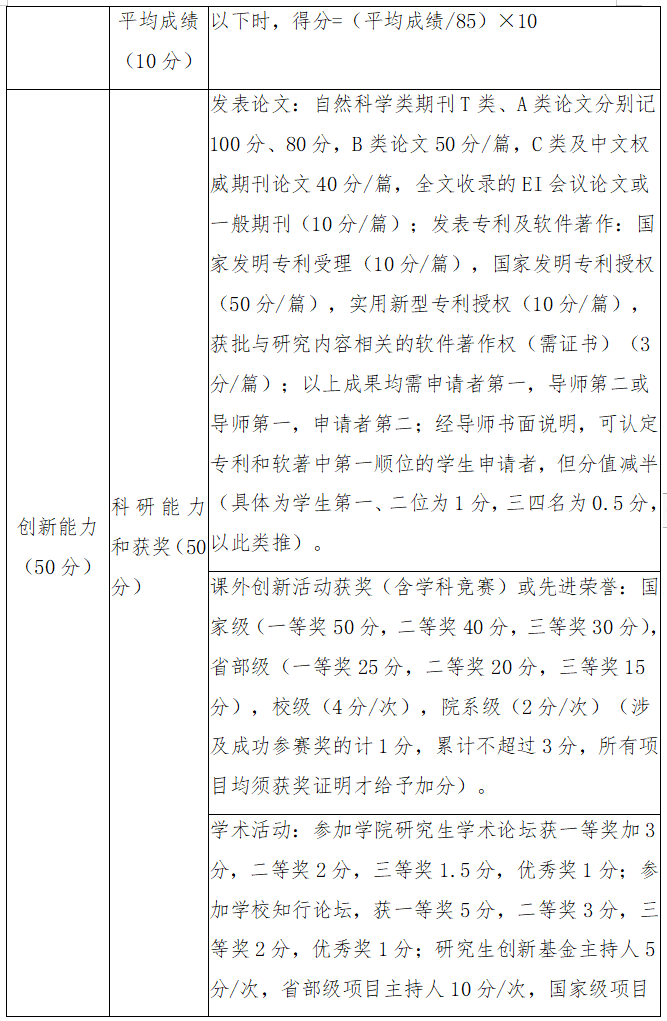 ④同一科研成果加分时按就高不就低的原则;总分出现同分时以创新能力分高者最终排名高。